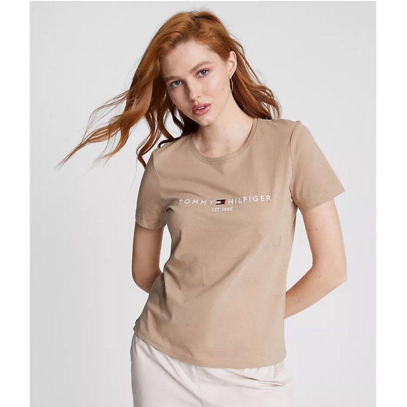 搶先評價 “《斷貨款~現+預S/M》美國🇺🇸直寄~Tommy Hilfiger女生短t 短袖上衣 棉t t恤 素t 奶茶色 禮物”