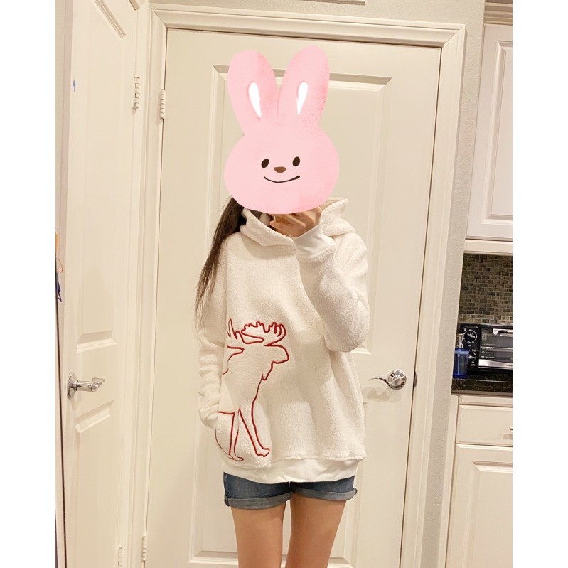 新款上市的泰迪熊毛毛帽t,非常保暖, 穿上就覺得暖烘烘,非常舒服, 胸前的麋鹿logo,非常可愛, 看到第一眼就愛上,有白/灰/黑三色喔! 這款是青年版的,160/42穿L(13-14)舒適, 穿XL(15-16)寬鬆