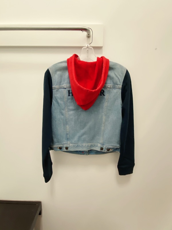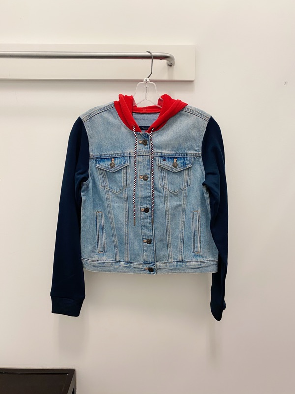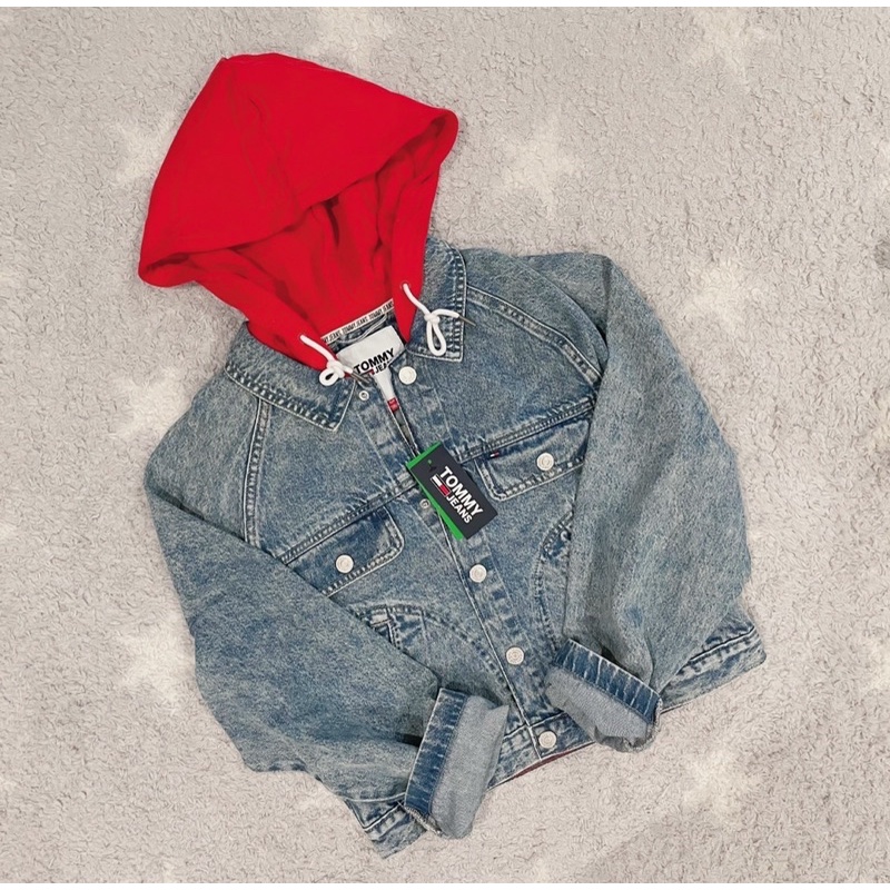 Tommy基本款的連帽牛仔外套又來囉! 這款是有點oversize寬鬆的感覺, 超值特價,原價近4000多🤣 美國現貨2件,160/42穿S寬鬆