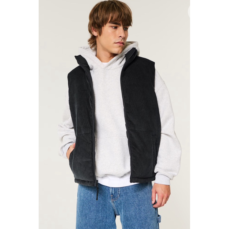 Hollister秋冬新款男生背心, 可以兩穿,一面是科技羽絨,一面是燈芯絨, 材質很好,兩穿很好搭。 只有一件喔!尺寸:M M:肩43/胸59/衣長68 公分