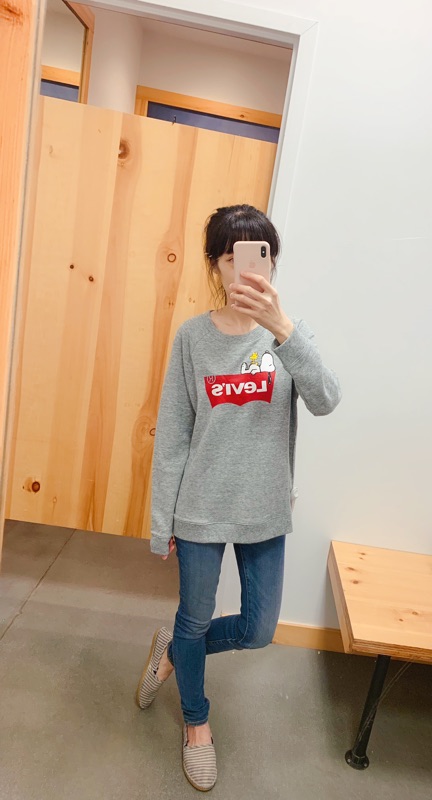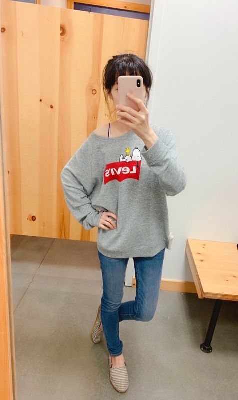 這款男女都可以穿喔!可以一起搭情侶裝, 史努比和Levi’s 的限量款,各尺寸只有一件喔! 160/41穿S小寬鬆,如果想要over size可以拿大一號喔!